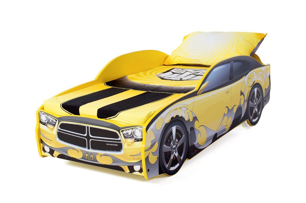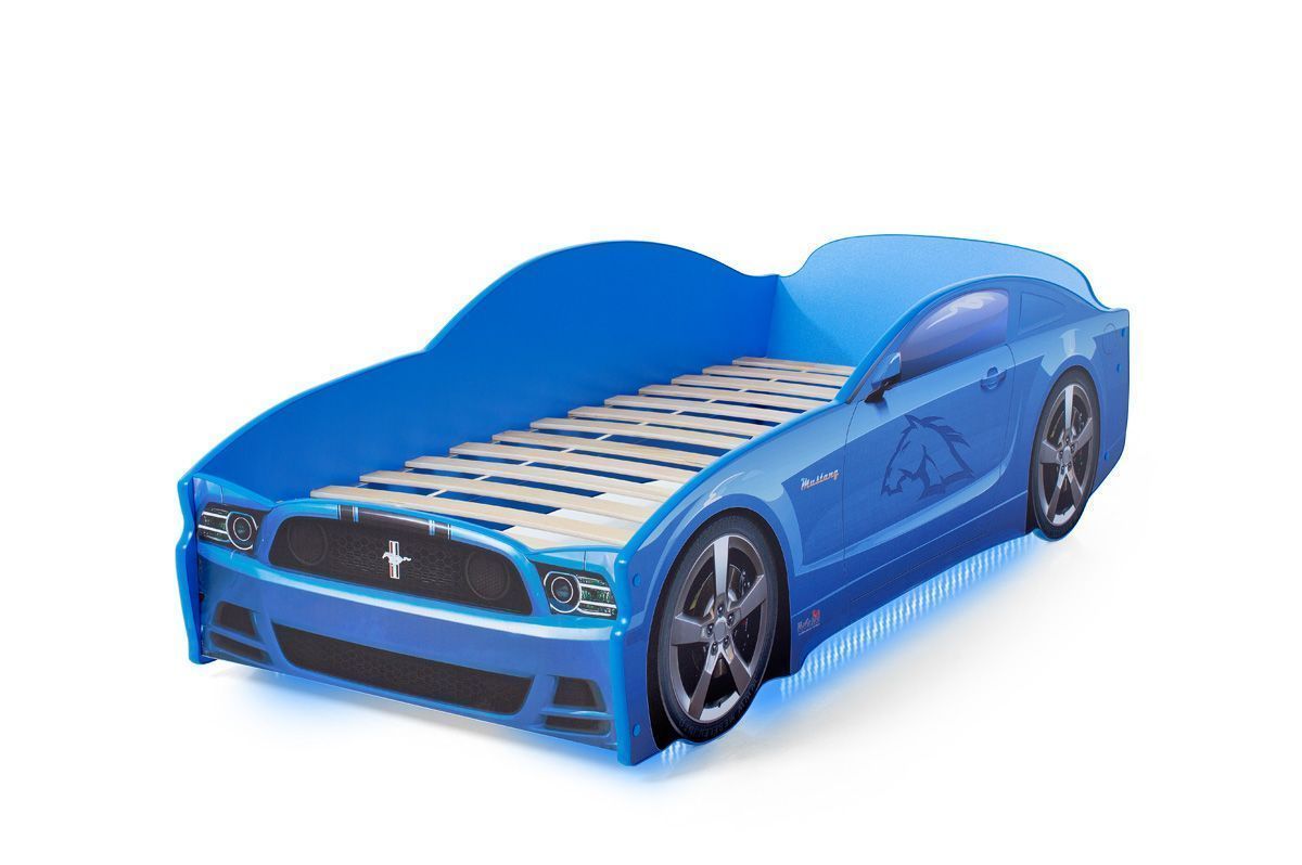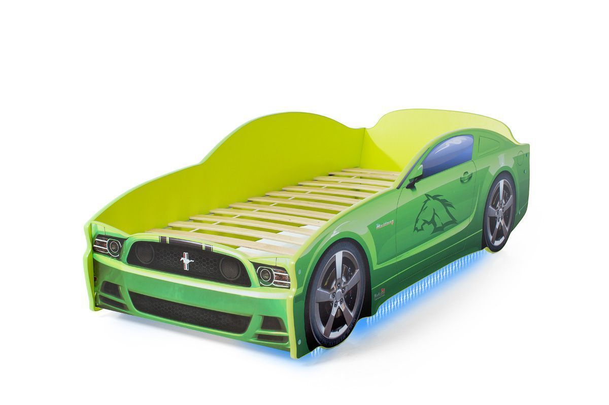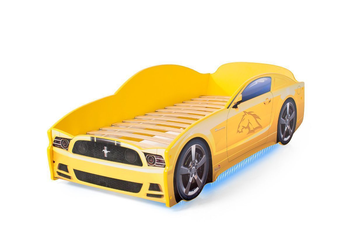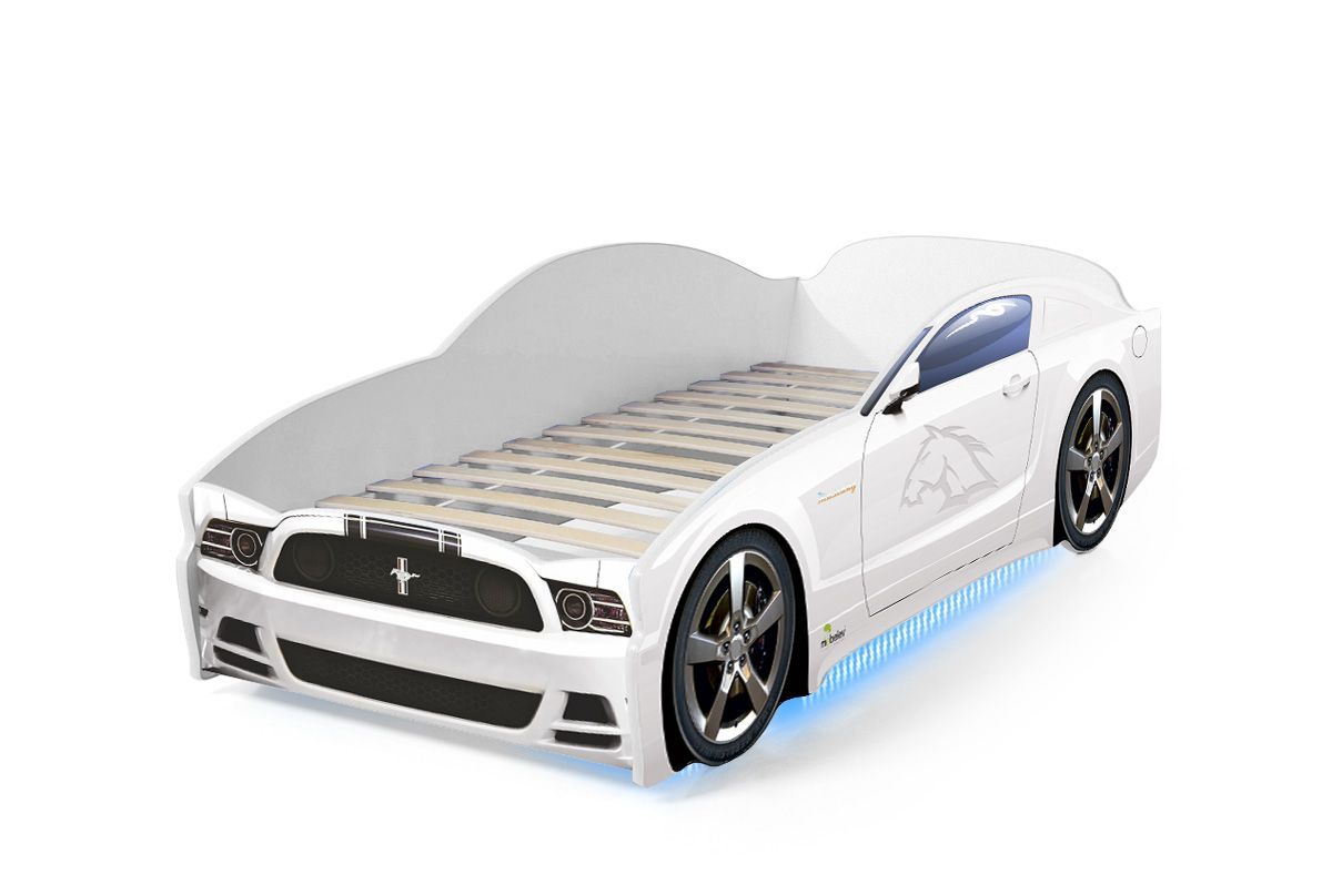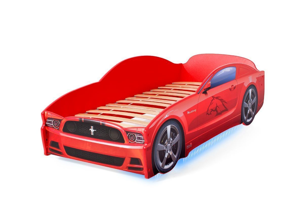 Кровать-машинка «Мустанг» серии LIGHT является одной из самых популярных моделей благодаря низкой цене и стильному спортивному дизайну. Кровать изготовлена из ЛДСП класса эмиссии Е-0,5, одобренной для производства детской мебели. Корпус декорирован наклейками для придания модели сходства с автомобилем-оригиналом, края отделаны мягким кантом из соображений безопасности ребенка. Наклейки защищены от износа ламинированным покрытием. Все, включая скрытые элементы конструкции, закрыты пленкой ПВХ, и новая кровать почти не имеет фабричного запаха.