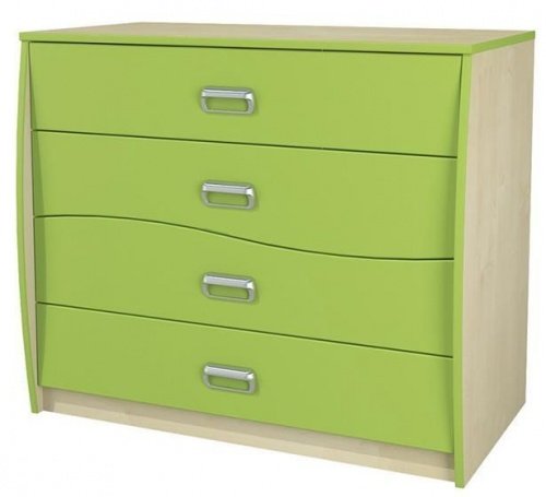 Комод для детской КОМБИ МН-211-24, выполнен в современном стиле. Производство: Республика Беларусь. Каркас выполнен из ЛДСП, фасады — МДФ+ПВХ. Комод имеет 4 выдвижных ящика.