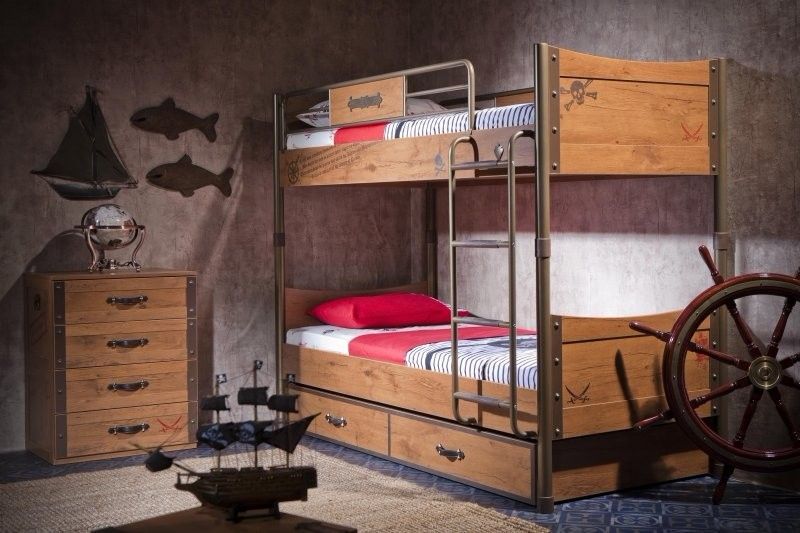 Предотвращает случайное падение ребенка во сне. Украшена рисунком пиратского компаса. Рекомендуется для всех двухъярусных кроватей и кроватей для детей до 10 лет.